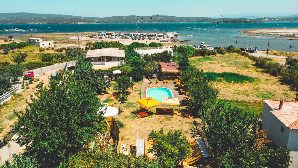 There is a view on the kitesurf spot, a kitesurf school on the beach, a skate ramp in the backyard, the only kiteboarding specific kitepark in Europe, and a few SUP boards for a cruise in the river or all the way to the island.
